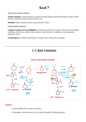 ORGANICS: Enolate chemistry: Regiochemistry in enolate formation (kinetic and thermodynamic control; enolate structure; aldol and related reactions, Bredt's rule • Enamines: Stork enamine reaction; thermodynamic control Organometallic chemistry • Grignard reagents and organolithiums: Formation and structure; reactions with carbon electrophiles (aldehydes and ketones, strained ethers, nitriles, carbon dioxide, 1,2- addition to a,B-unsaturated carbonyls, esters) • Organocuprates: Synthesis and structure; reactions; hard- soft acid-base principle Wittig reaction • Formation of phosphorus ylids and their reaction with aldehydes and ketones; stabilized and unstabilized ylids; stereoselectivity in the Wittig reaction • Methods for functional group transformation: Oxidation and reduction Oxidation of alkenes • (a) Hydroboration (anti-Markovnikov addition) • (b) Epoxidation: Electrophilic (peracids and dioxiranes) and nucleophilic (reaction of polar alkenes with H2O2/NaOH) • (c) Dihydroxylation: cis-Dihydroxylation (KMnO4 and OsO4) and trans-dihydroxylation • (d) Oxidative cleavage of alkenes and diols • (e) Ozonolysis Oxidation of alcohols • (a) Chromium oxidants • (b) Swern oxidation Reductions • (a) Hydride reducing agents • (b) Birch reduction As well as: Conductors, semiconductors, insulators