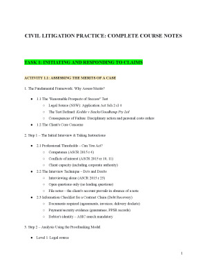These notes are a complete, detailed guide to Civil Litigation Practice, synthesised exclusively from newest curriculum and resources (2026 editions). These notes helped me achieved HD by bridging the gap between theory and practice – giving you the step-by-step procedures, checklists, and precedents you need to actually practice law, not just pass the subject. Topics Covered: 1. Initiating and Responding to Claims 2. Assessing Merits 3. Drafting Initial Letter of Advice 4. Drafting Pleadings 5. Appearing in Interlocutory Applications 6. Drafting Interlocutory Documents 7. Preparing Oral Submissions 8. Settling Proceedings and Enforcing Judgement 9. Enforcing a Judgment Why You Should Buy These Notes: ⭐ Practical & up-to-date ⭐ All topics of the course covered ⭐ Easy to understand ⭐ Everything you need for final oral exam and assignments