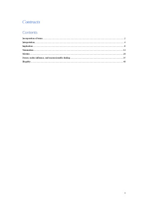 These are the notes that I took into the exam and I achieved a High h1 (85) for this subject. These condensed notes contain step-by-step solutions to every hypo-related topic, as well as case summaries Tthat are easily adaptable and ready for analogy in an exam. Topics: Incorporation of terms Interpretation Implication Termination Mistake Duress, undue influence, and unconscionable dealing Illegality *About me: Top 30 in my cohort; previous EAGLE tutor. ** Please note that these subject notes are purely for the purpose of aiding your understanding and enhancing your knowledge on the subject matter. Please paraphrase to avoid any plagiarism for your benefit.