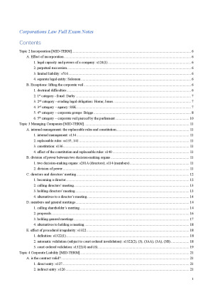 High H1 (86) Corporations Law step-by-step exam notes NEW COURSE STRUCTURE PLUS MIDTERM NOTES