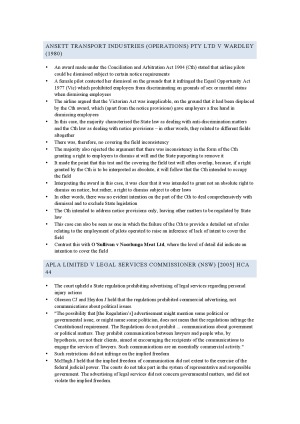 These 200009 notes provide the relevant Cases and legislation of the Australian Constitutional Law.