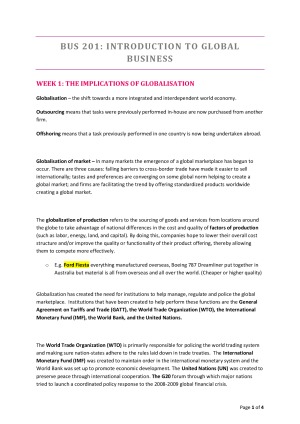 BUS201 notes incorporating learning objectives and summarized information and content gained through the lecture slides and textbooks.