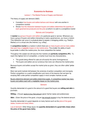 Extensive 23115 notes compiled from both the textbook and lecture slides throughout the semester which allowed me to achieve a HD in this subject . These notes include thorough analysis of concepts such as: - Supply and Demand - Equilibrium and Elasticity - Market and Government Policies - The efficiency of markets - Externalities - GDP and price indexes - Unemployment and inflation - Aggregate demand and supply - The monetary system - The external Sector