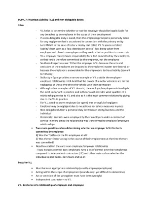 These notes consist of all the core topics studied throughout LAW231 including relevant cases and Civil Liability Act provisions. Topics include: 1) The tort of negligence- an overview 2) The elements in focus: Duty of Care 3) The elements in focus: Standard of care and breach of duty 4 and 5: The elements in focus: Causation and Scope of liability for consequences 6) Defences to negligent claims 7) Vicarious liability and non-delegable duties 8) Occupier's liability and Pure Economic Loss 9) Medical negligence 10) Negligence and Lawyers