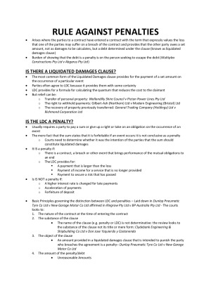 LAW3103 Exam Notes Includes overview of each topic and flow charts Topics include: 1. Rule against penalties 2. Relief from forfeiture 4. Estoppel 5. Undue Influence 6. Unconscionable Conduct 7. Fiduciary Obligations 8. Confidential Information 9. Equitable Property 10. Equitable Assignment 11. Remedies Content correct as at semester 1, 2016.