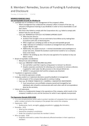 Summaries of lectures and tutorials for Applied Company Law Semester 2 of 2015. Useful for the 79014 exam.