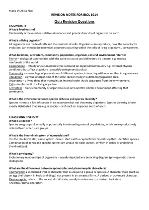 The first section of the notes relate to the quiz that goes towards 10% of the final grade while the rest are for the exam (30% of the final grade). The notes were compiled from a checklist that was given so all areas that the lecturer examines the class on are contained.