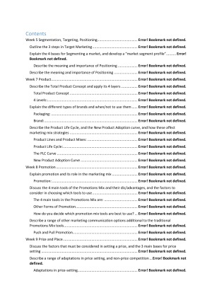 These notes for 1003MKT are from Weeks 5 - 11 (final exam) and were very useful when I was studying. All I needed to know for the exam, I put into this document and did extremely well in the exam that I almost got an overall 7 in the course.