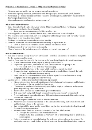 These are my NEUR30003 lecture transcriptions taken lecture by lecture. They are so detailed and help to explain everything - saving a lot of time re-watching the lectures or scratching your head wondering what it was that the lecturer said about that picture! These are a fantastic base to go on and further summarise as they have absolutely everything you need to know. An invaluable resource! Lecture 1 – Why Study the Nervous System? Lecture 2 – Cellular Basis of Neural Function Lecture 3 – Neural Communication and Plasticity Lecture 4 – Development of the Nervous System Lecture 5 – Measurement of Neural Structure and Function Lecture 6 – Touch Lecture 7 – Visual System I Lecture 8 – Visual System II Lecture 9 – Auditory System Lecture 10 – Gustation and Olfaction Lecture 12 – Lower Motorneurone Lecture 13 – Upper Motorneuron Lecture 14 – Modulation of Movement Lecture 18 – Neural Control of Digestion Lecture 19 – Sensory: Motor Integration: OPTOGENETICS Lecture 20 – Learning and Memory Lecture 21 – Molecular Mechanisms of Memory Lecture 22 – Memory Modules for Time, Place and Space Lecture 23 – Pain Lecture 24 – Emotions: Fear Lecture 25 – Motivation and Reward Lecture 26 – Social Cognition Lecture 27 – Disorders of the Nervous System Lecture 28 – Disorders of the Nervous System II: Autism Lecture 29 – Disorders of the Nervous System III: Developmental Disorder Lecture 31 – Evolution and Brains Lecture 32 – Language Lecture 33 – Disorders of Thought and Mood Lecture 34 – Cognition Lecture 35 – Consciousness