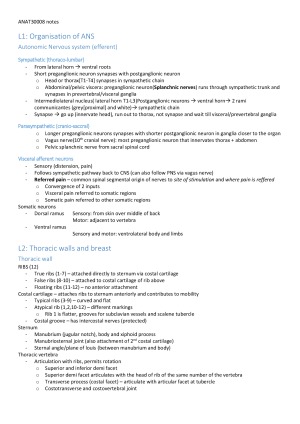 Notes for ANAT30008(unimelb) inclusive of spoken content from lectures/lecture capture (and every single mumble that will probably become a 20 mark question on the exam). Notes are occasionally arranged into table for a better understanding/visualization of content