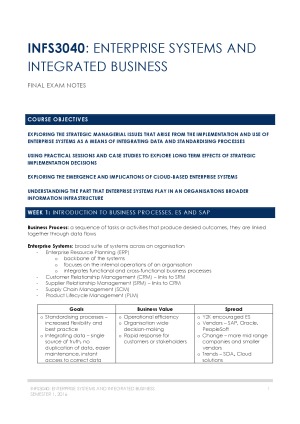 Will get you through semester and exam - great results achieved! - organised format - covers all exam topics These notes are 14 PAGES long
