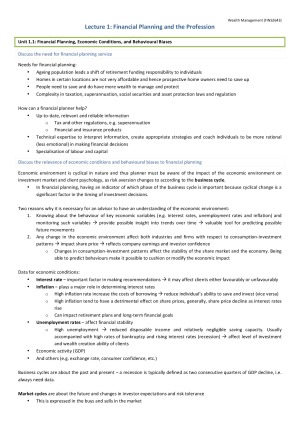 Comprehensive Mid-semester Notes - Wealth management (Distinction)