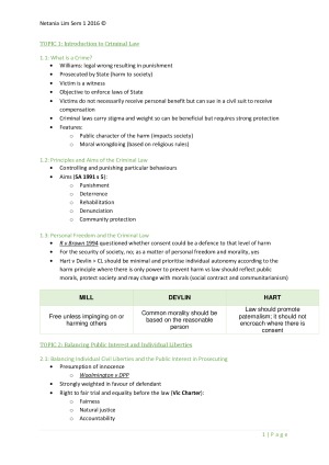 Exam notes for LAW1114 Criminal Law 1, including case briefs and everything needed in the exam.