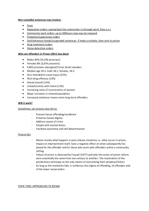 Includes the 10 essential topics within the unit CRIM305: 1) Introduction 2) Approaches to Rehabilitation 3) Working in Institutions 4) Case Management Skills 5) Tools and Interventions 6) Developing Relationships with Offenders 7) Working with complex needs and special populations 8) Managing risk, violence and crisis 9) Collaborative Care 10) Reintegration